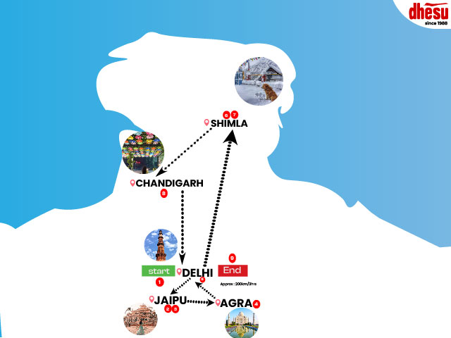 (Value Plus Comfort) ▶︎ Delhi: Ashok Country Resort / Tree House / Quality Inn ▶︎ Agra: The Retreat / Regal Vista ▶︎ Jaipur: Park Ocean / Park Prime ▶︎ Shimla: The Zion / Regenta Central Hilltop / Rock Castle ▶︎ Chandigarh: Velvet Clarks Exotica