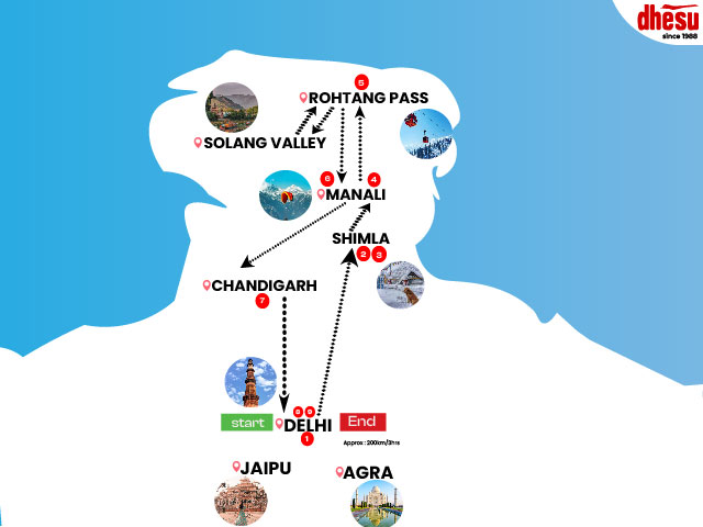 (Value Plus Comfort) ▶︎ Delhi: Ashok Country Resort / Tree House / Quality Inn ▶︎ Shimla: The Zion / Regenta Central Hilltop / Rock Castle ▶︎ Manali: Mastiff Grand / Serenity Resort ▶︎ Chandigarh: Velvet Clarks Exotica